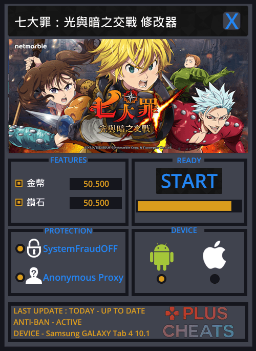 七大罪:光與暗之交戰修改器,可以繞過官方系統偵測,讓你成功修改出金幣、鑽石(請適度的修改,以免被發現作弊),支持最新版本的七大罪:光與暗之交戰,在Android和iOS中輕鬆做修改。簡單實用,你的遊戲你做主!精小快速,永久免費,持續更新!