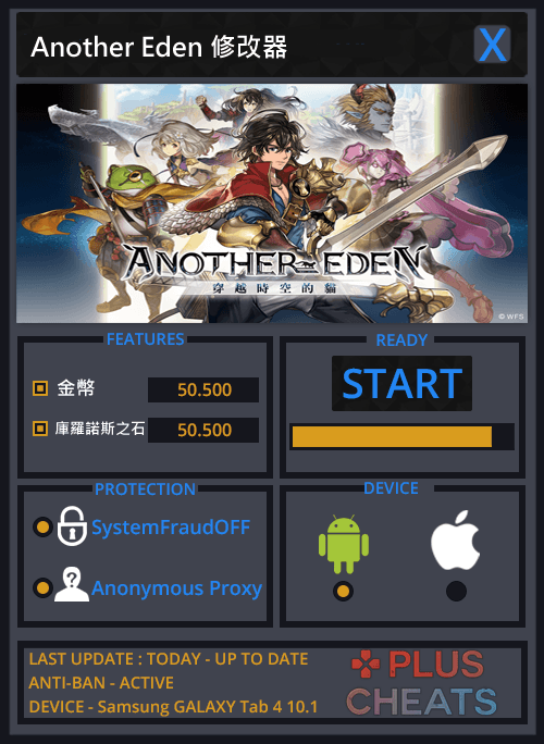Another Eden修改器,可以繞過官方系統偵測,讓你成功修改出金幣、庫羅諾斯之石(請適度的修改,以免被發現作弊),支持最新版本的Another Eden,在Android和iOS中輕鬆做修改。簡單實用,你的遊戲你做主!精小快速,永久免費,持續更新!