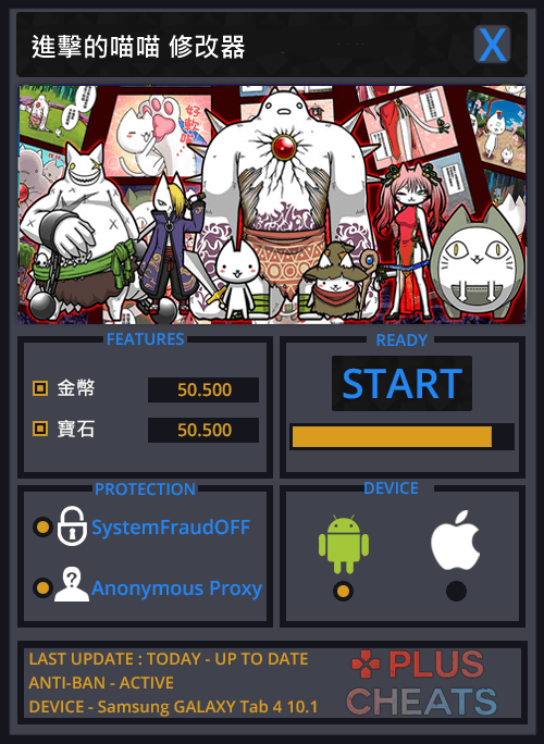進擊的喵喵修改器,可以繞過官方系統偵測,讓你成功修改出金幣、寶石(請適度的修改,以免被發現作弊),支持最新版本的進擊的喵喵,在Android和iOS中輕鬆做修改。簡單實用,你的遊戲你做主!精小快速,永久免費,持續更新!