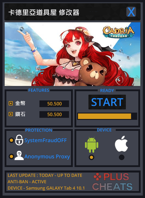 卡德里亞道具屋修改器,可以繞過官方系統偵測,讓你成功修改出金幣、鑽石(請適度的修改,以免被發現作弊),支持最新版本的卡德里亞道具屋,在Android和iOS中輕鬆做修改。簡單實用,你的遊戲你做主!精小快速,永久免費,持續更新!