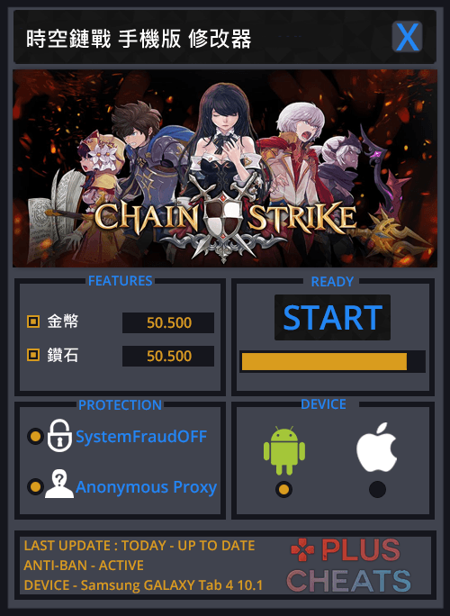 時空鏈戰修改器,可以繞過官方系統偵測,讓你成功修改出金幣、鑽石(請適度的修改,以免被發現作弊),支持最新版本的時空鏈戰,在Android和iOS中輕鬆做修改。簡單實用,你的遊戲你做主!精小快速,永久免費,持續更新!