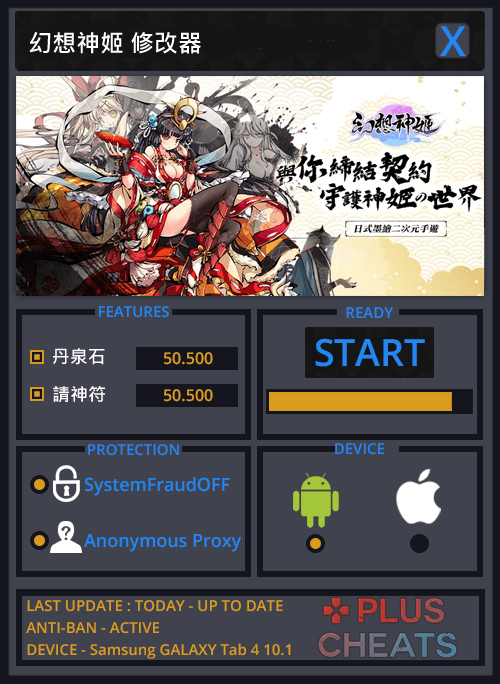 幻想神姬修改器,可以繞過官方系統偵測,讓你成功修改出丹泉石、請神符(請適度的修改,以免被發現作弊),支持最新版本的幻想神姬,在Android和iOS中輕鬆做修改。簡單實用,你的遊戲你做主!精小快速,永久免費,持續更新!
