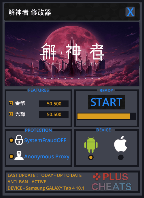 解神者修改器,可以繞過官方系統偵測,讓你成功修改出金幣、光輝(請適度的修改,以免被發現作弊),支持最新版本的解神者,在Android和iOS中輕鬆做修改。簡單實用,你的遊戲你做主!精小快速,永久免費,持續更新!