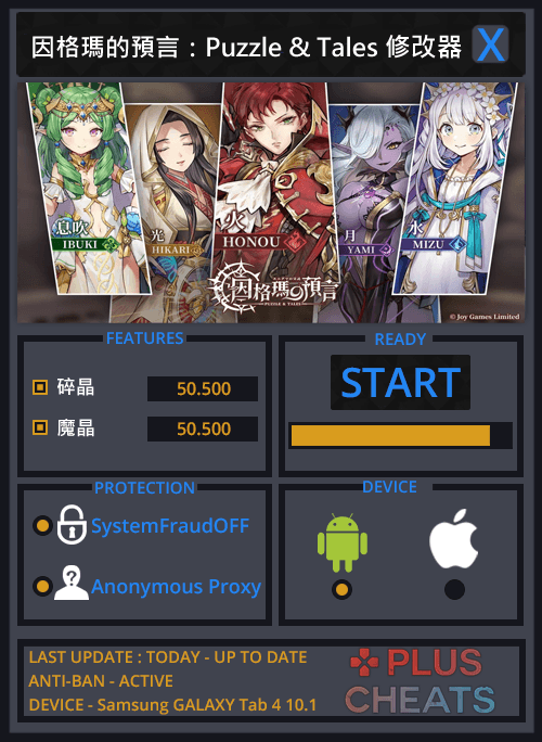 因格瑪的預言:Puzzle & Tales修改器,可以繞過官方系統偵測,讓你成功修改出碎晶、魔晶(請適度的修改,以免被發現作弊),支持最新版本的因格瑪的預言:Puzzle & Tales,在Android和iOS中輕鬆做修改。簡單實用,你的遊戲你做主!精小快速,永久免費,持續更新!