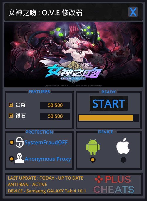 女神之吻 : O.V.E修改器,可以繞過官方系統偵測,讓你成功修改金幣、鑽石(請適度的修改,以免被發現作弊),支持最新版本女神之吻 : O.V.E,在Android和iOS中輕鬆做修改。簡單實用,你的遊戲你做主!精小快速,永久免費,持續更新!