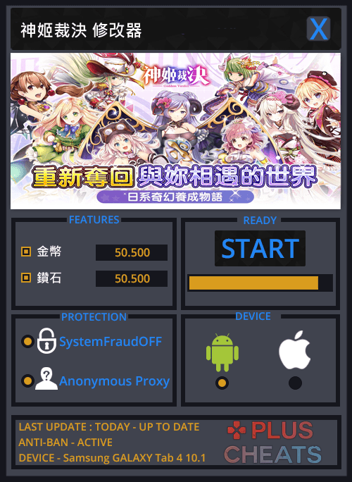 神姬裁決修改器,可以繞過官方系統偵測,讓你成功修改出金幣、鑽石(請適度的修改,以免被發現作弊),支持最新版本的神姬裁決,在Android和iOS中輕鬆做修改。簡單實用,你的遊戲你做主!精小快速,永久免費,持續更新!
