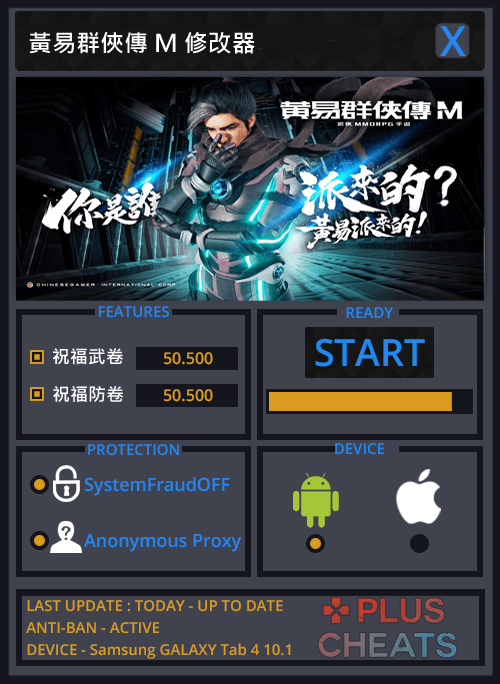 黃易群俠傳 M修改器,可以繞過官方系統偵測,讓你成功修改出祝福武卷、祝福防卷(請適度的修改,以免被發現作弊),支持最新版本的黃易群俠傳 M,在Android和iOS中輕鬆做修改。簡單實用,你的遊戲你做主!精小快速,永久免費,持續更新!