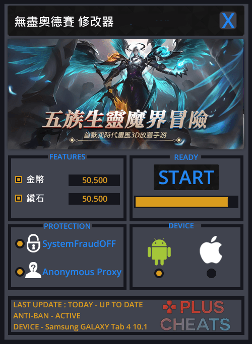 無盡奧德賽修改器,可以繞過官方系統偵測,讓你成功修改出金幣、鑽石(請適度的修改,以免被發現作弊),支持最新版本的無盡奧德賽,在Android和iOS中輕鬆做修改。簡單實用,你的遊戲你做主!精小快速,永久免費,持續更新!