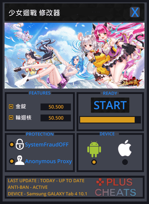 少女迴戰修改器,可以繞過官方系統偵測,讓你成功修改出金錠、輪迴核(請適度的修改,以免被發現作弊),支持最新版本的少女迴戰,在Android和iOS中輕鬆做修改。簡單實用,你的遊戲你做主!精小快速,永久免費,持續更新!