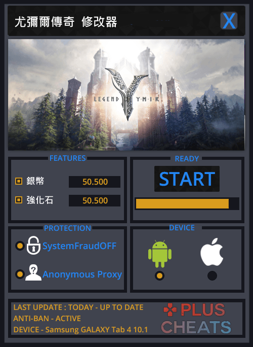 尤彌爾傳奇修改器,可以繞過官方系統偵測,讓你成功修改出銀幣、強化石(請適度的修改,以免被發現作弊),支持最新版本的尤彌爾傳奇,在Android和iOS中輕鬆做修改。簡單實用,你的遊戲你做主!精小快速,永久免費,持續更新!