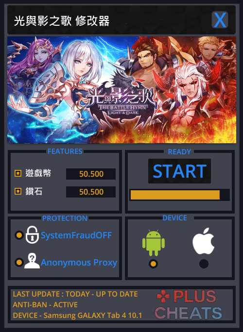 光與影之歌修改器,可以繞過官方系統偵測,讓你成功修改出遊戲幣、鑽石(請適度的修改,以免被發現作弊),支持最新版本的光與影之歌,在Android和iOS中輕鬆做修改。簡單實用,你的遊戲你做主!精小快速,永久免費,持續更新!