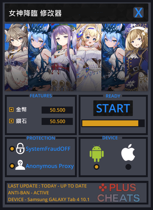 女神降臨修改器,可以繞過官方系統偵測,讓你成功修改出金幣、鑽石(請適度的修改,以免被發現作弊),支持最新版本的女神降臨,在Android和iOS中輕鬆做修改。簡單實用,你的遊戲你做主!精小快速,永久免費,持續更新!