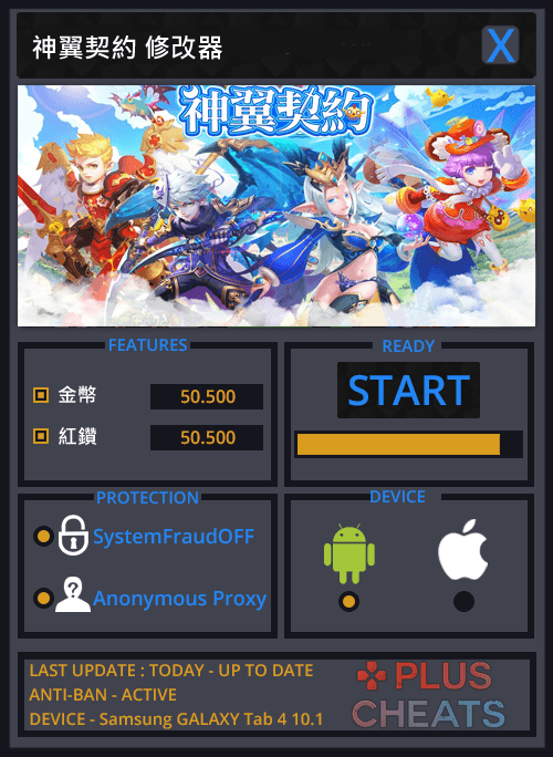 神翼契約修改器,可以繞過官方系統偵測,讓你成功修改出金幣、紅鑽(請適度的修改,以免被發現作弊),支持最新版本的神翼契約,在Android和iOS中輕鬆做修改。簡單實用,你的遊戲你做主!精小快速,永久免費,持續更新!