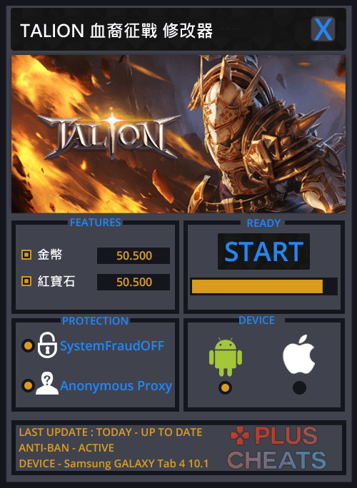 TALION 血裔征戰修改器,可以繞過官方系統偵測,讓你成功修改出金幣、紅寶石(請適度的修改,以免被發現作弊),支持最新版本的TALION 血裔征戰,在Android和iOS中輕鬆做修改。簡單實用,你的遊戲你做主!精小快速,永久免費,持續更新!