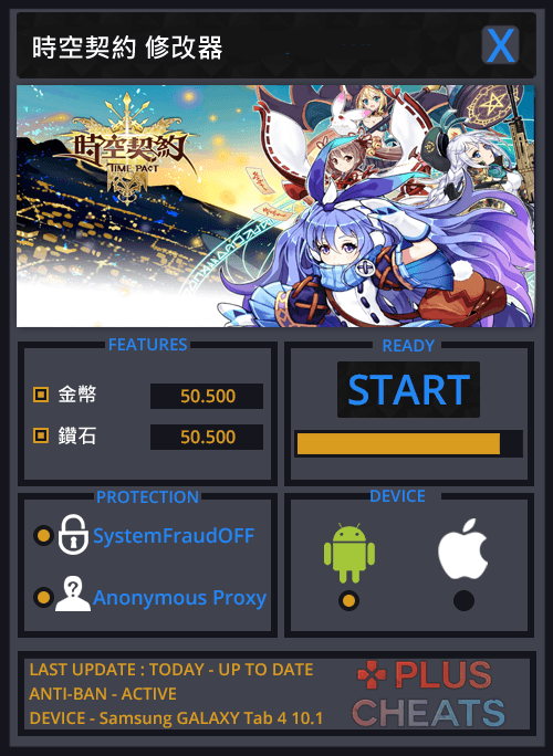 時空契約修改器,可以繞過官方系統偵測,讓你成功修改出金幣、鑽石(請適度的修改,以免被發現作弊),支持最新版本的時空契約,在Android和iOS中輕鬆做修改。簡單實用,你的遊戲你做主!精小快速,永久免費,持續更新!