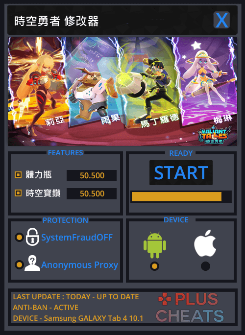 時空勇者修改器,可以繞過官方系統偵測,讓你成功修改出體力瓶、時空寶鑽(請適度的修改,以免被發現作弊),支持最新版本的時空勇者,在Android和iOS中輕鬆做修改。簡單實用,你的遊戲你做主!精小快速,永久免費,持續更新!